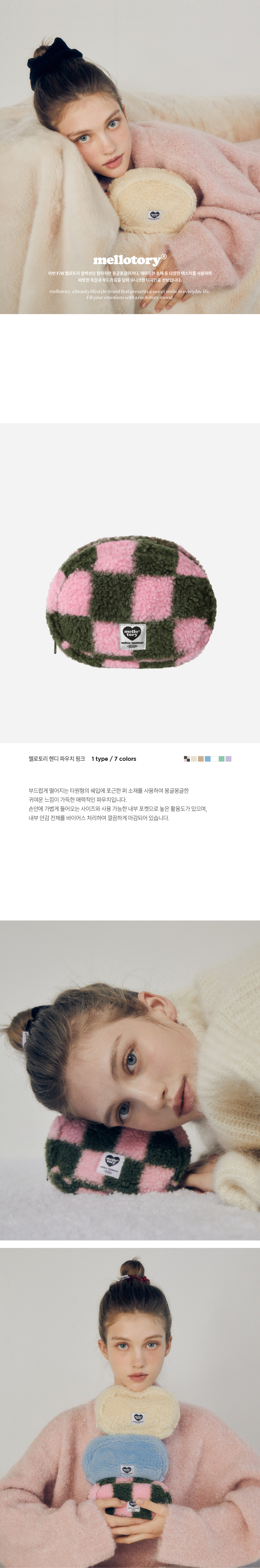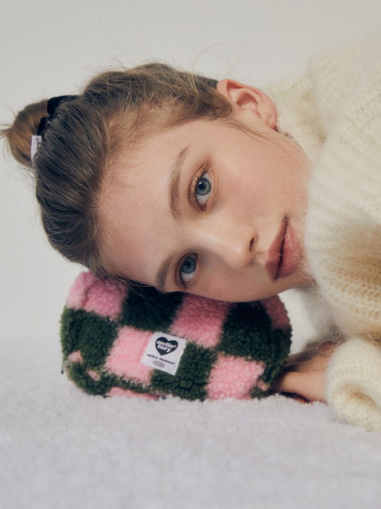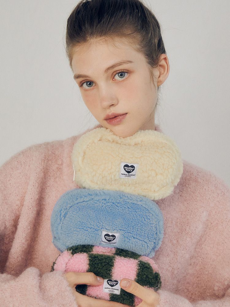 타원형 쉐입에 포근한 퍼 소재를 사용한 몽글몽글한 느낌의 매력적인 파우치.