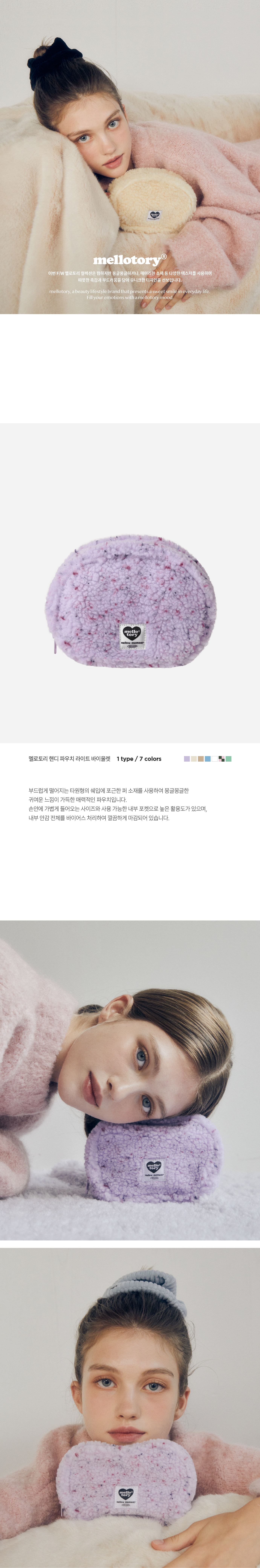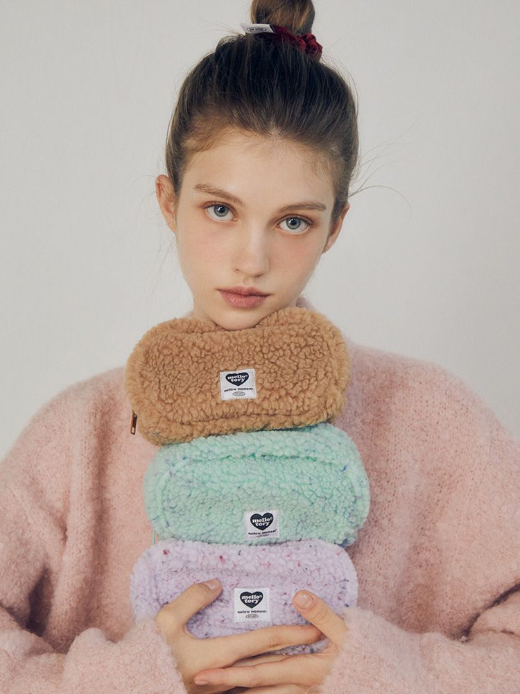 타원형 쉐입에 포근한 퍼 소재를 사용한 몽글몽글한 느낌의 매력적인 파우치.