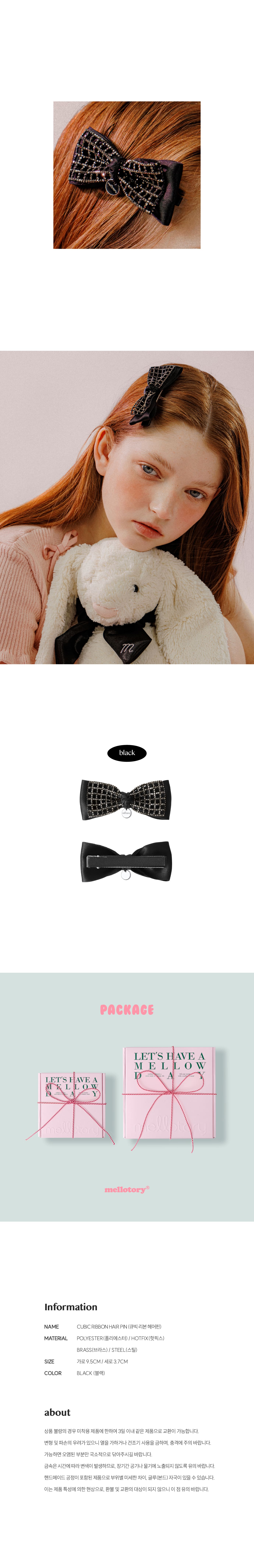 은은한 광택감의 사틴 리본과 반짝이는 스톤장식 리본 디테일이 패미닌한 무드를 더해 주는 집게형 헤어핀입니다.