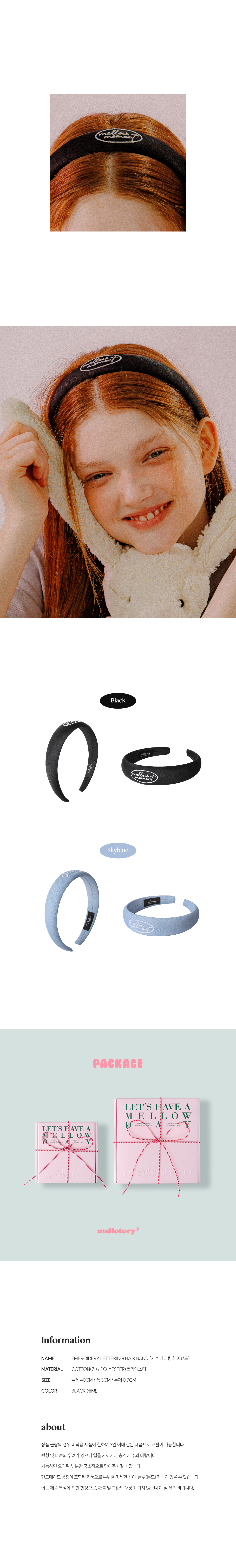 멜로토리만의 경쾌한 레터링 자수가 돋보이는 해어밴드입니다.