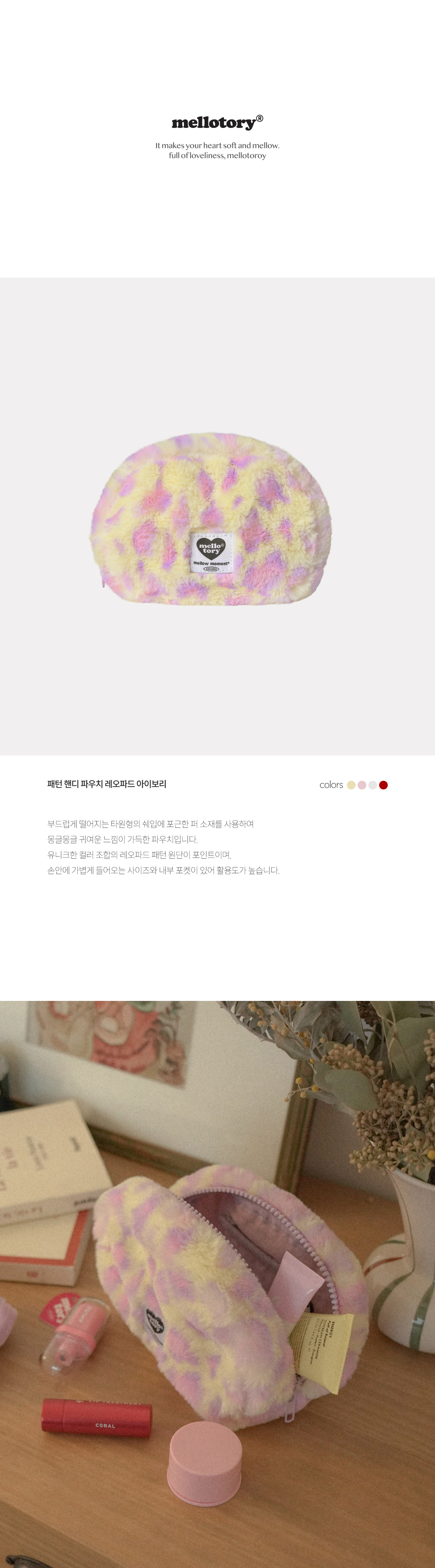 유니크한 컬러 조합의 레오파드 패턴 원단이 포인트이며,