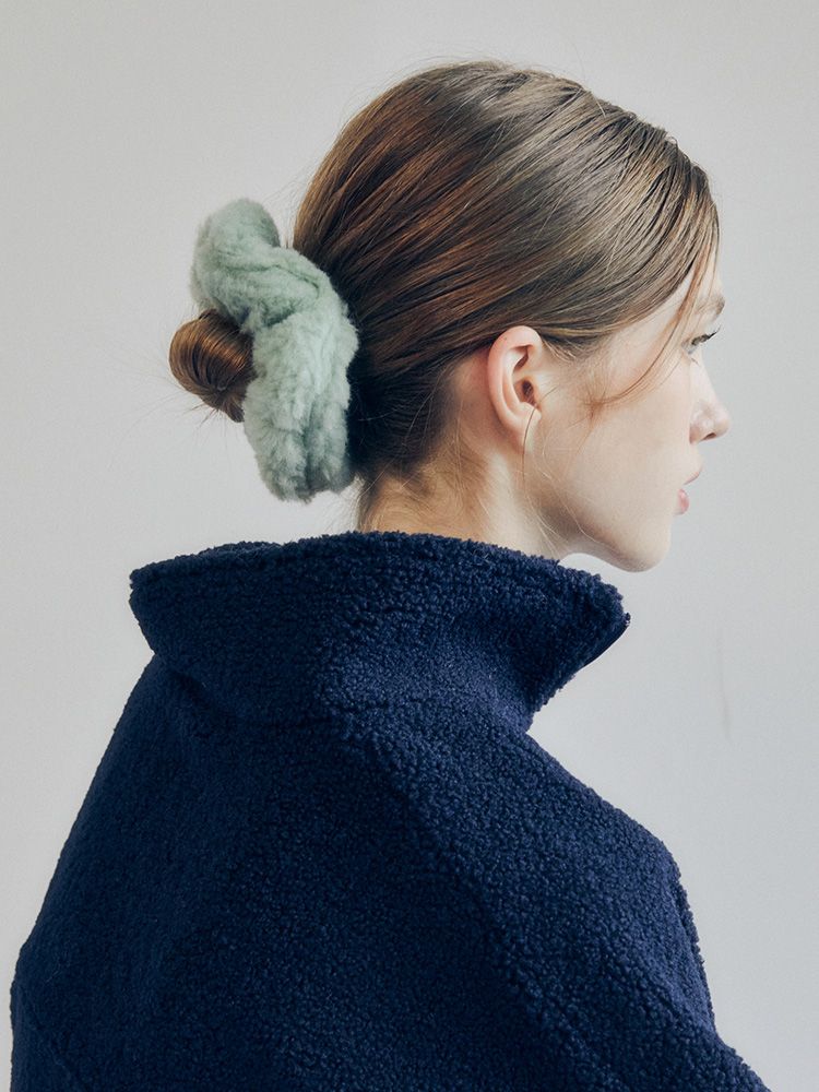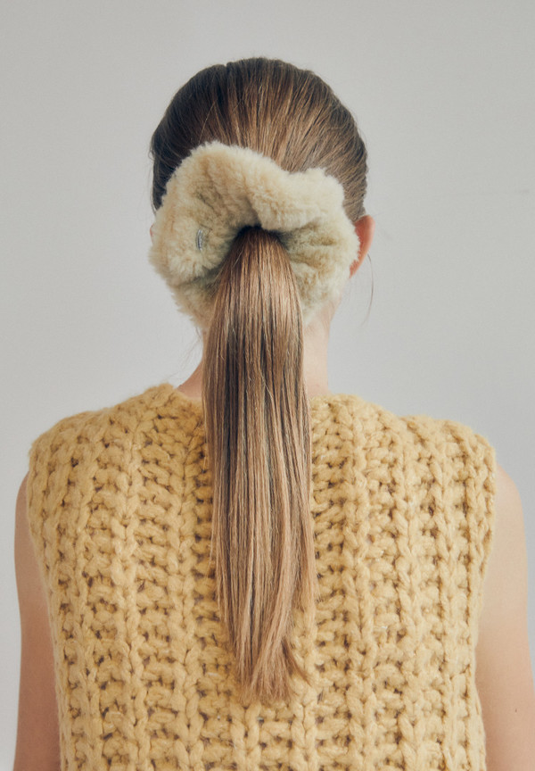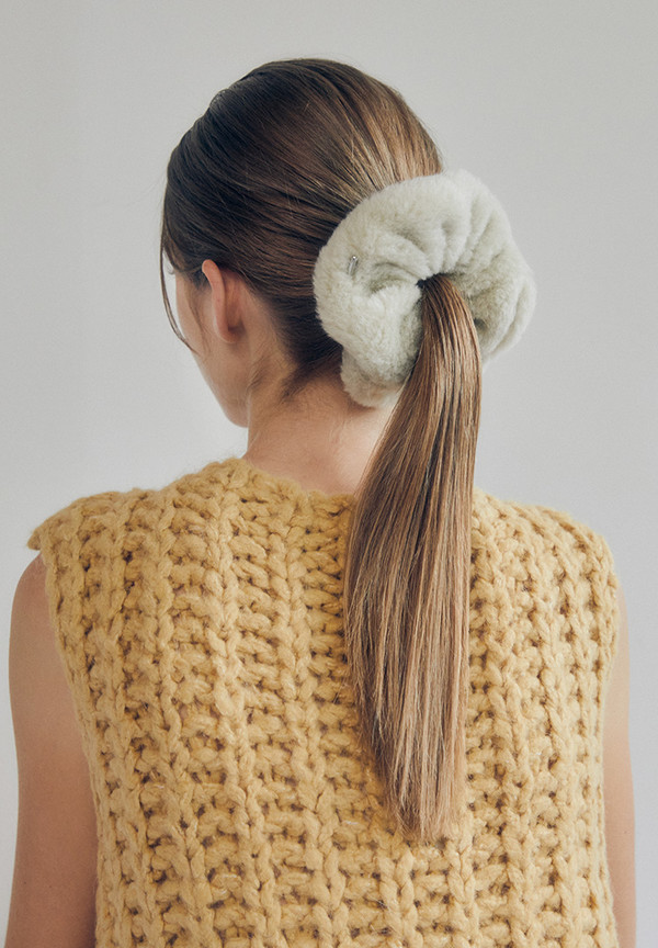 미니멀하고 볼드한 실루엣에 에코퍼가 가진 부드러운 소재감을 그대로 살려 가을~겨울 따듯한 느낌의 포인트를 주기 좋은 스크런치.