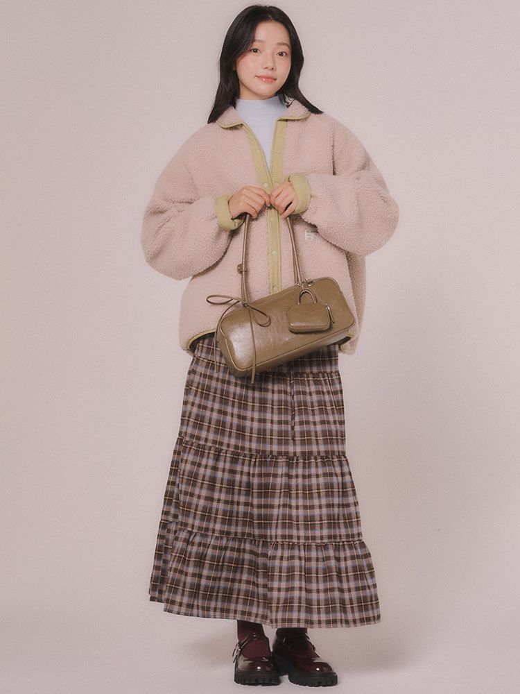 내추럴한 광택과 크랙이 매력적인 소프트 타입의 비건 레더 바게트 백입니다.